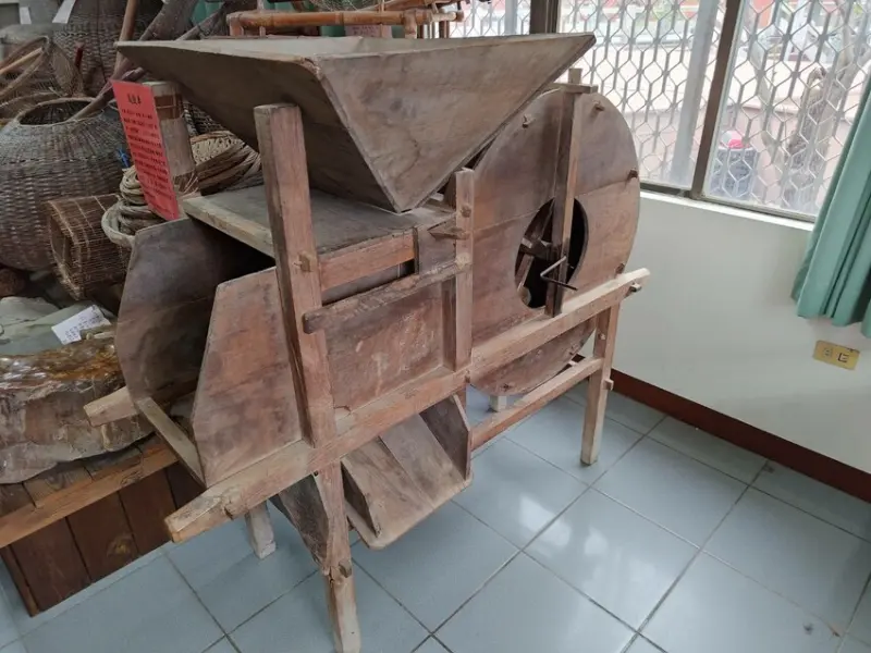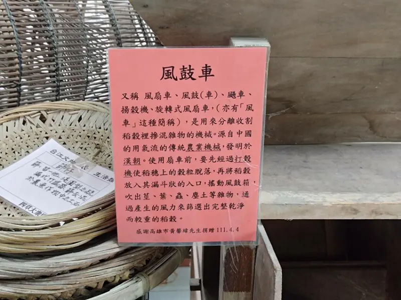 走到最裡面有一台「鼓風車」,是用來分割稻穀中的混雜物