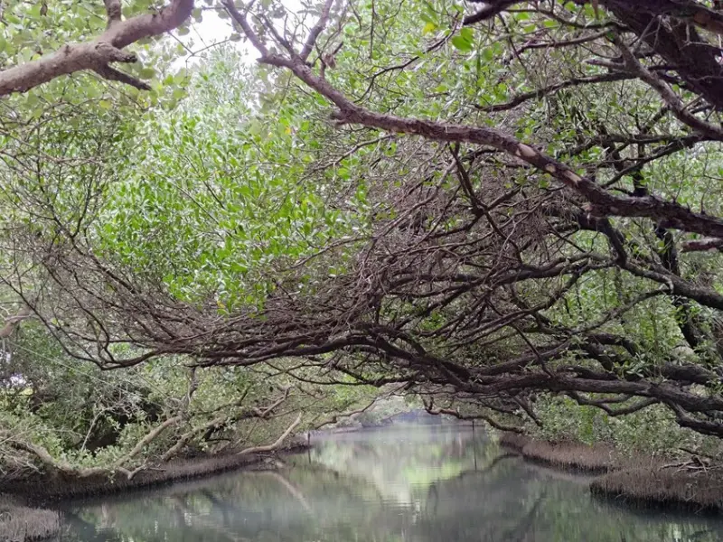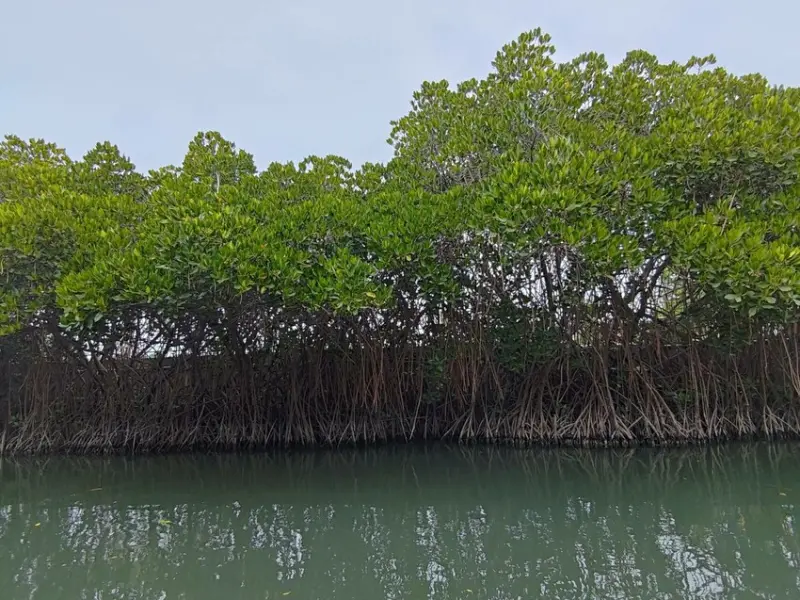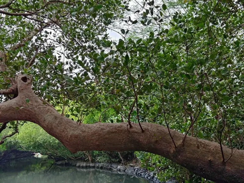 「海茄苳」又稱「海欖雌」,台灣從北到南的紅樹林區域都可以看到,最特別的地方就是下方從水面長出來的「呼吸根」,讓枝幹可以免於缺氧的環境