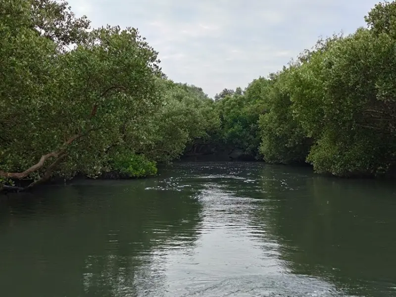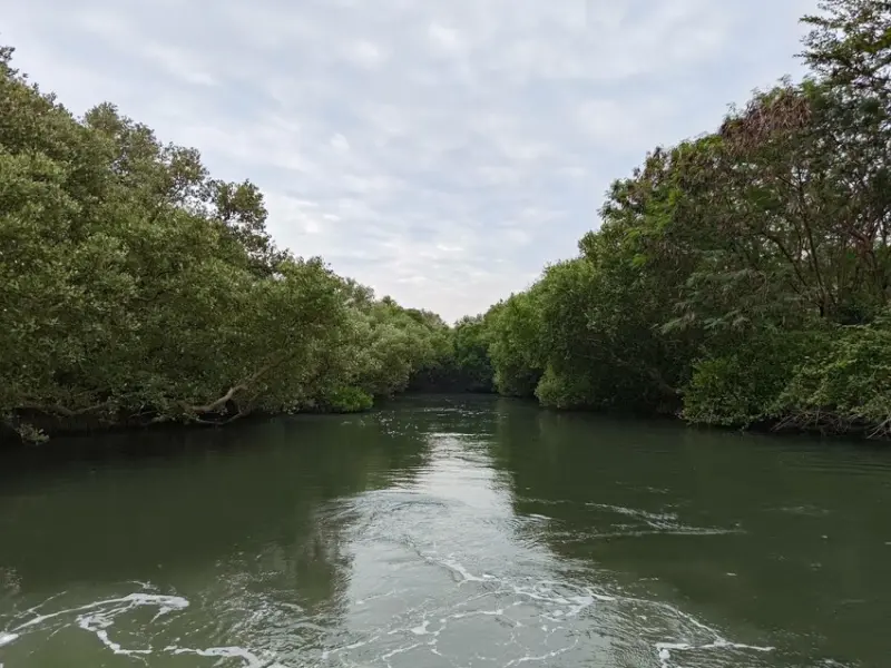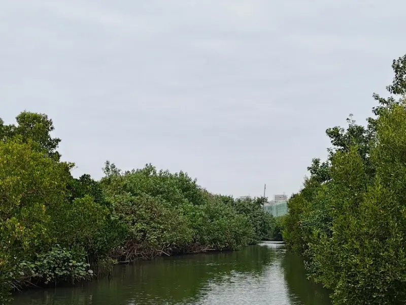 尾巴是防洪門擋住,據說早期鄭成功收復台灣時有從這裡經過,因為水道和紅樹林茂密,成為天然的屏障和隱秘通道,非常適合軍事行動和隱匿行蹤