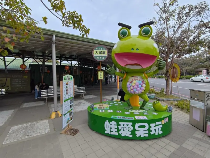 兌換完門票後可以往旁邊的「綠色隧道候船室」,會先看到一隻非常大隻的「蛙愛呆玩」的青蛙扭蛋機