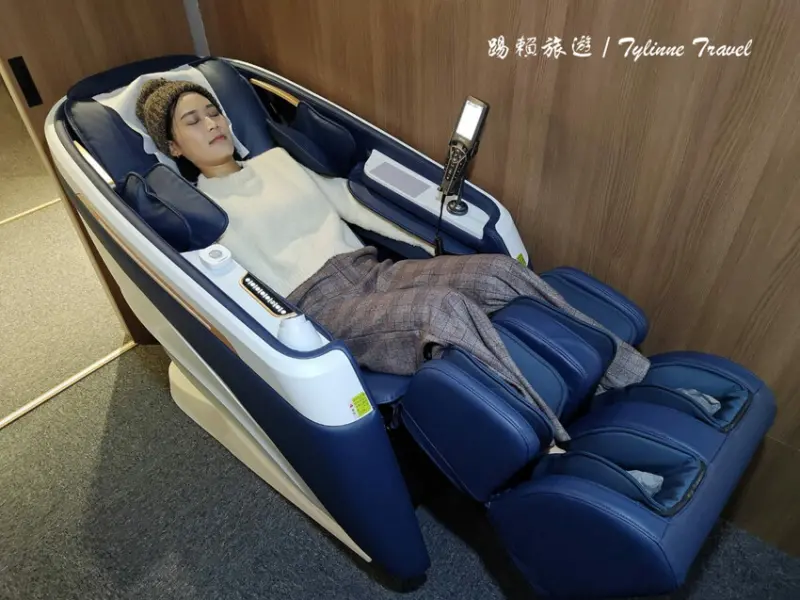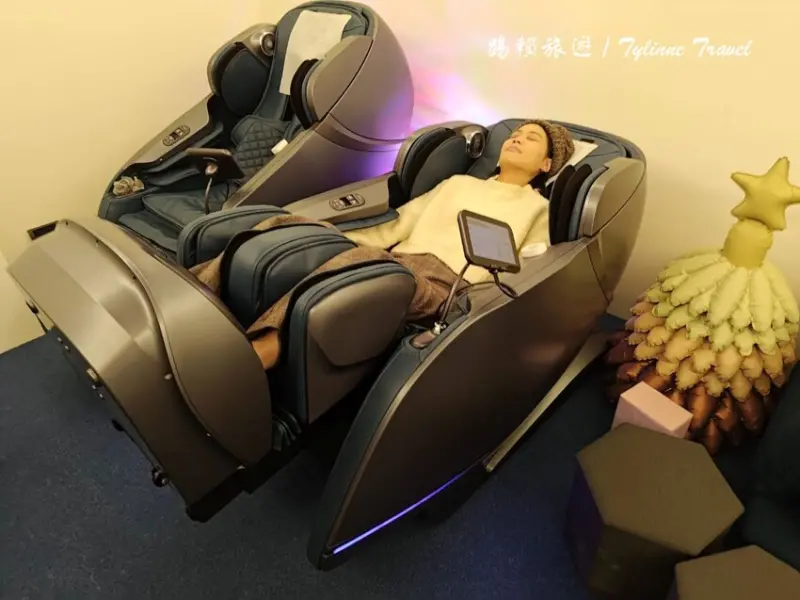 「輝葉放空站」的按摩椅體驗區完全仿照飛機頭等艙的設計,讓你一坐上去就像進入了頂級私人包廂。