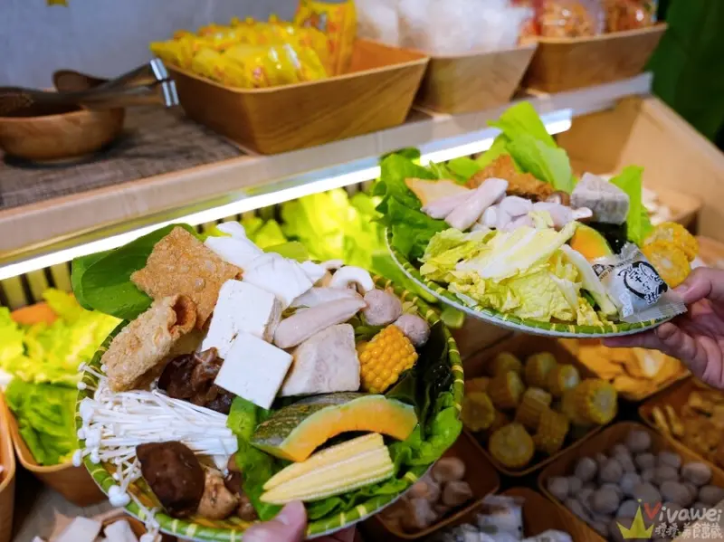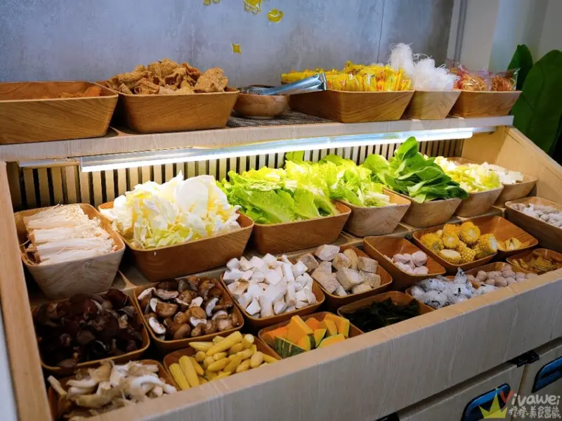 ▲門口旁有個蔬菜自助區~這邊有多達20幾種蔬菜和火鍋配料~還有王子麵、冬粉、鍋燒麵等副食!