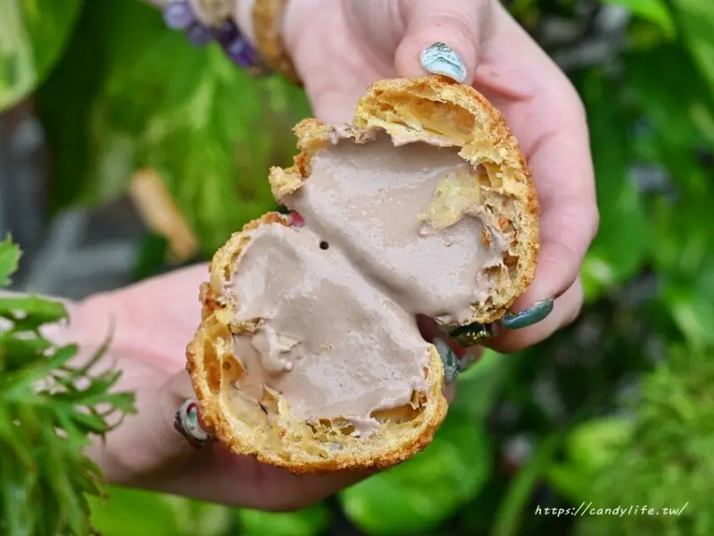 另外泡芙都是現點現灌餡,經典雪芙是卡士達鮮奶泡芙,酥脆的泡芙一切開裡頭的內餡是會爆漿的!絲滑香濃的卡士達鮮奶餡,奶香濃厚,微甜不膩,感覺冰冷凍過後享用也很讚
