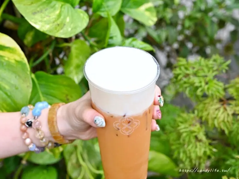 鹿嶼茶作的雪蓋系列就是招牌奶蓋,基底除了五種原茶外,還可以選擇奶茶、可可或泰奶,糖糖選了雪蓋泰奶,這杯最低微糖,固定少冰,採用進口泰國手標紅茶製成的香濃泰奶,搭配帶微鹹微甜的綿密奶蓋,層次豐富,香甜不膩,喜歡喝泰奶的朋友必點