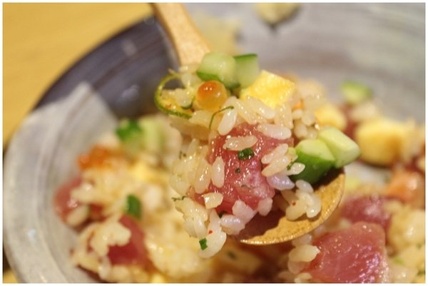 與底層的醋飯充分混合後,醋飯幾乎消失無蹤,