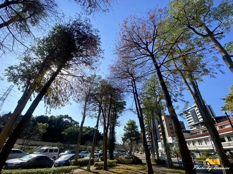 公園其實四周都是圍著馬路的,所以看到路旁有高大的落羽松時,表示目的地到了