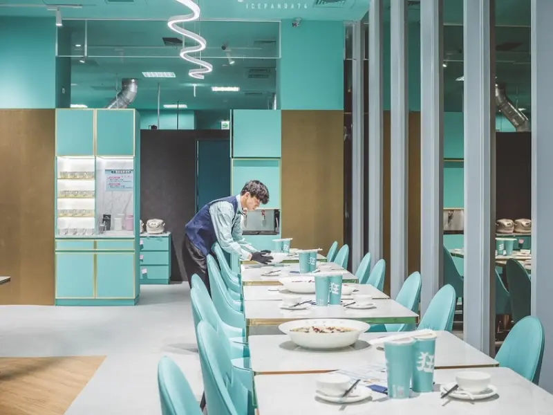 ▲狂一鍋酸菜魚的室內設計與色彩皆具時尚精品感,以TIFFANY藍及蝴蝶結元素裝點的猶如走秀。