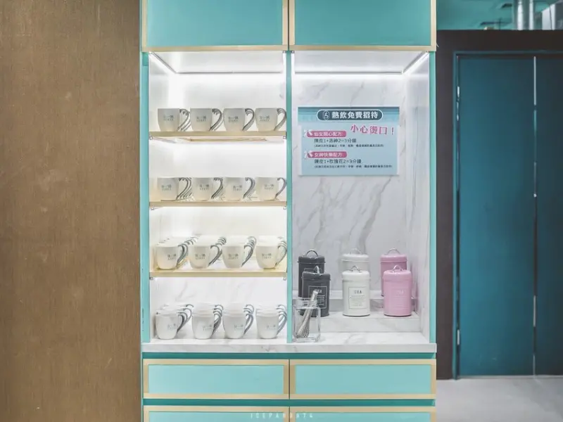 若不想喝冰飲,餐廳提供免費熱飲,讓顧客可以選擇陳皮、洛神花及玫瑰花等食材,自行沖泡花草茶,依照個人口味調整份量,品味到暖心的熱飲。