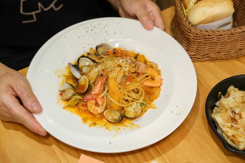 手作義式紅醬海鮮直麵(鮮蝦+蛤蠣)💰215元