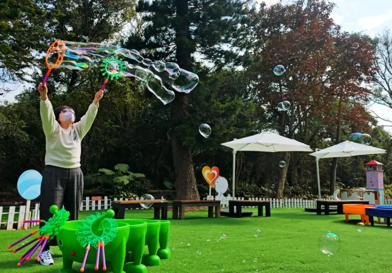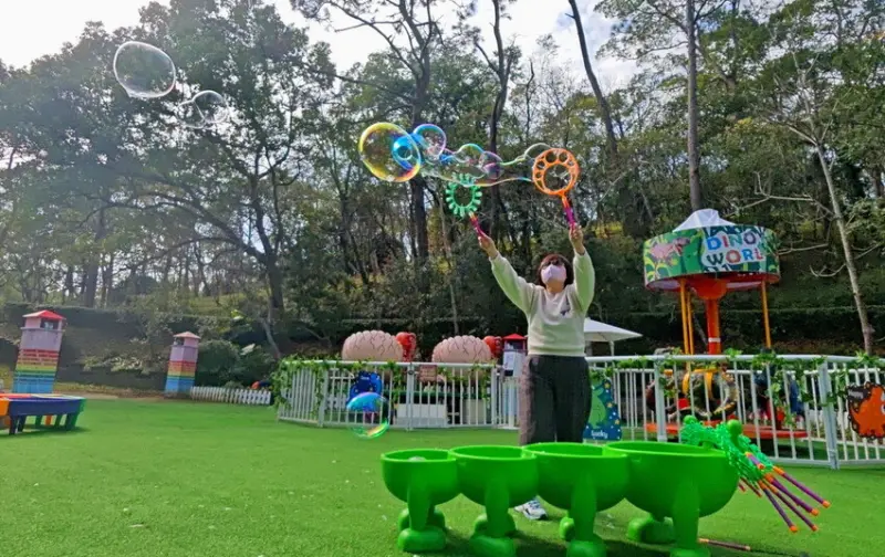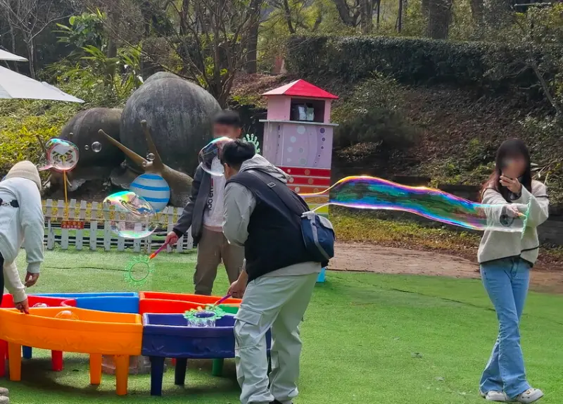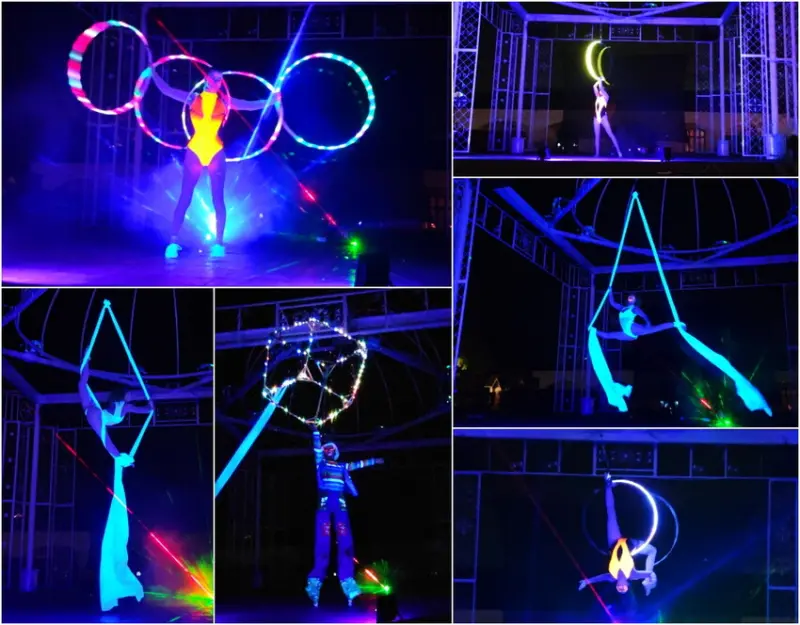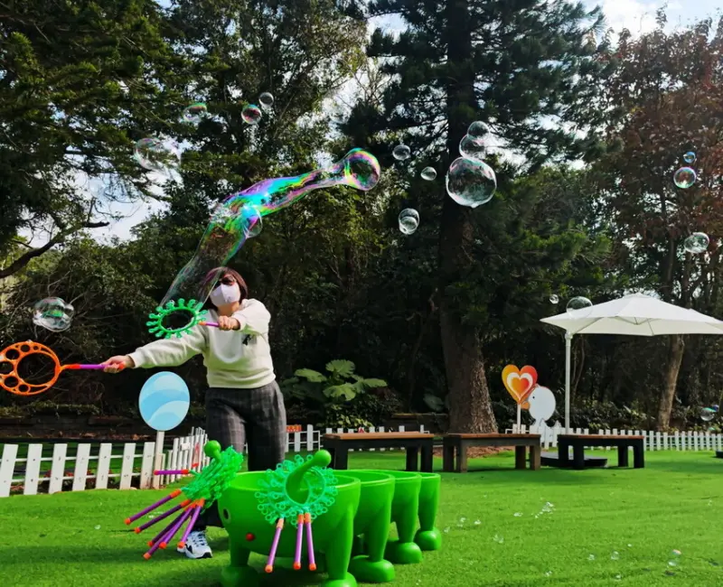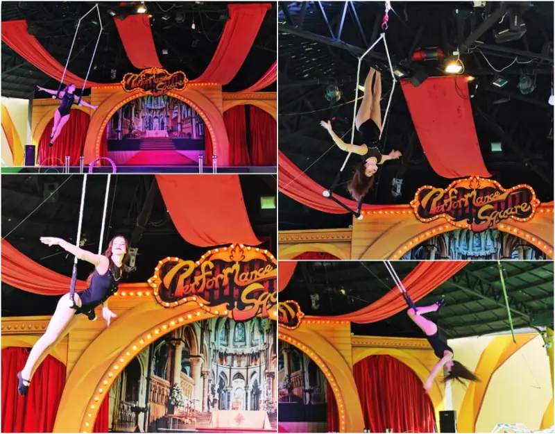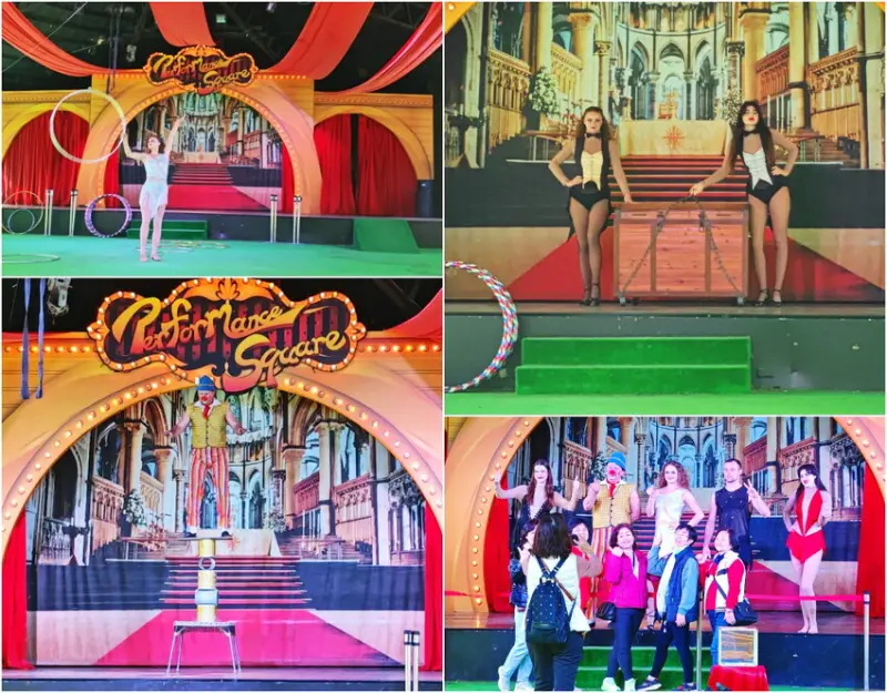 有魔術表演、呼拉圈舞、小丑跟大家互動、彩帶鞦韆……等,表演結束後還可以跟表演這一起拍照合影。