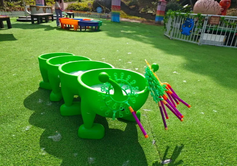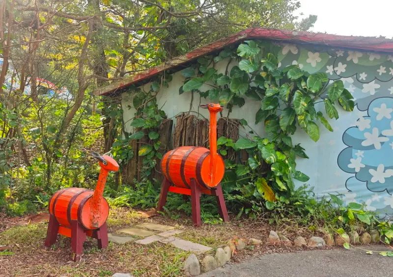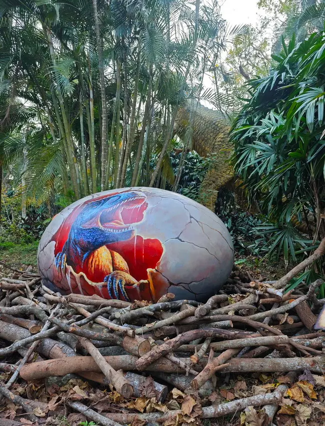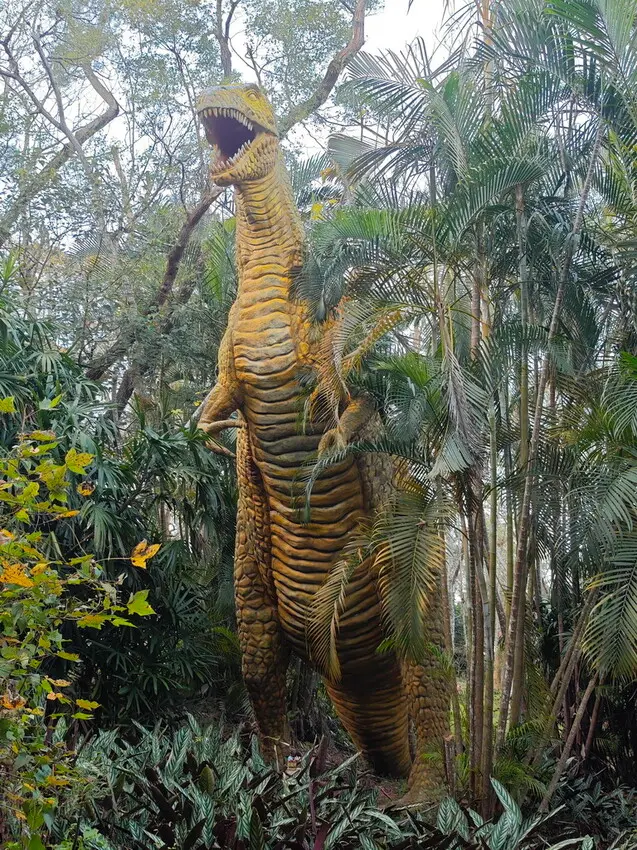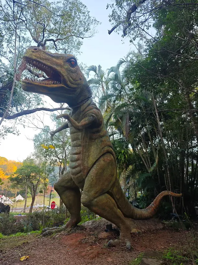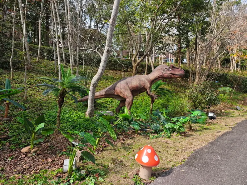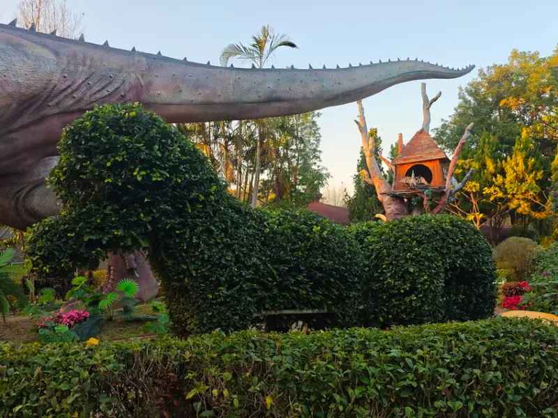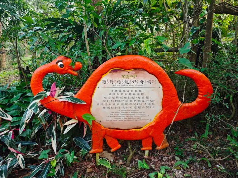 一走進花園,恐龍就搖著尾巴歡迎著我們的到來。