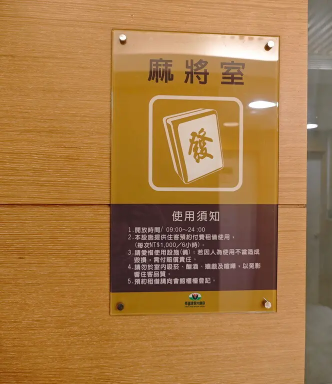 - 擺設麻將桌1組,場地清潔費NT$1,000元/6小時/組.