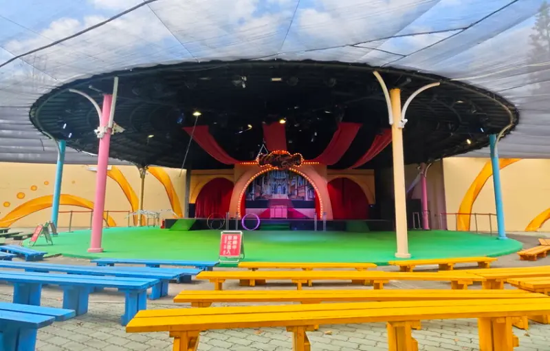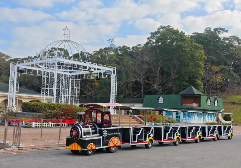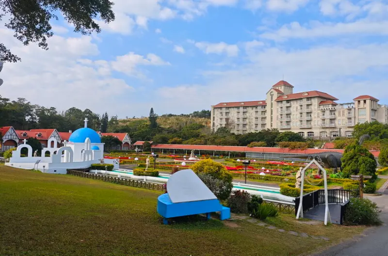 白天晚上都有『外國舞者的特色表演』,跟觀眾互動超有趣,帶著家人一同搭乘遊園小火車感受園區的園藝造景、歐式建築,婚紗教堂。