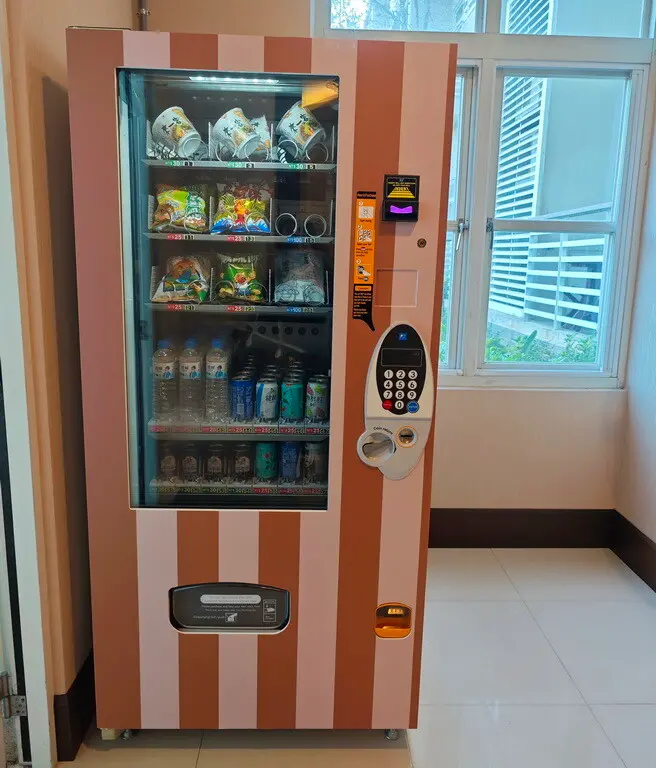渡假村外有超商,但嘴饞又懶得走時,可以到販賣機買泡麵、零食餅乾、飲料和水。