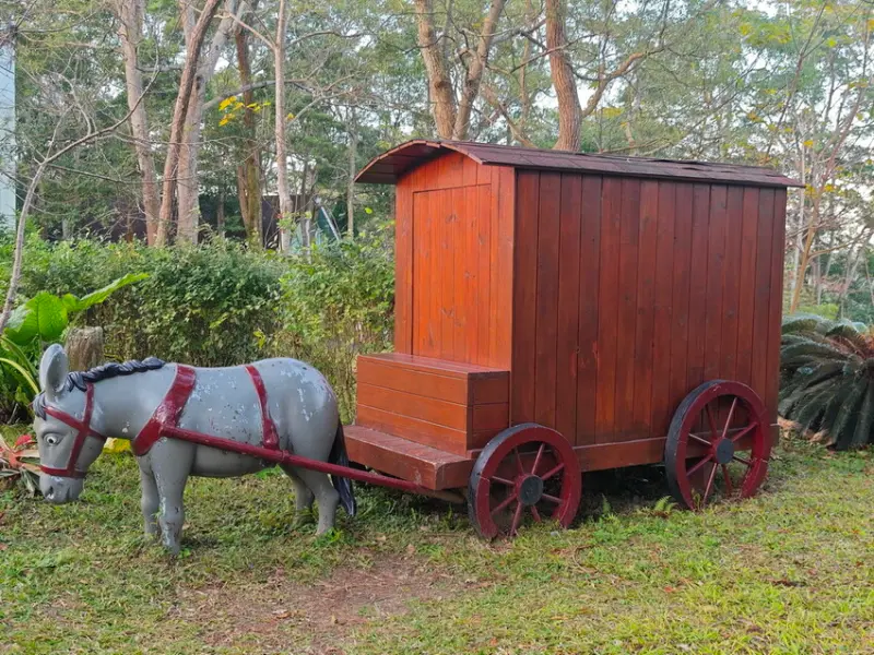 有點忘記這是什麼故事?驢子拉著馬車,上面有個小女孩….