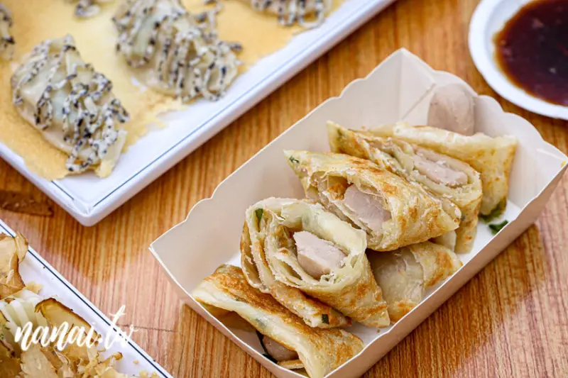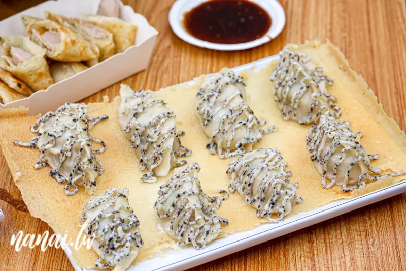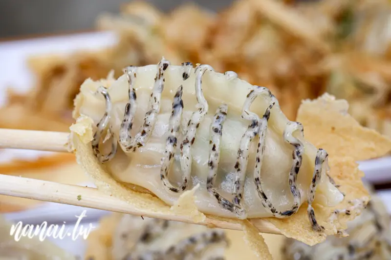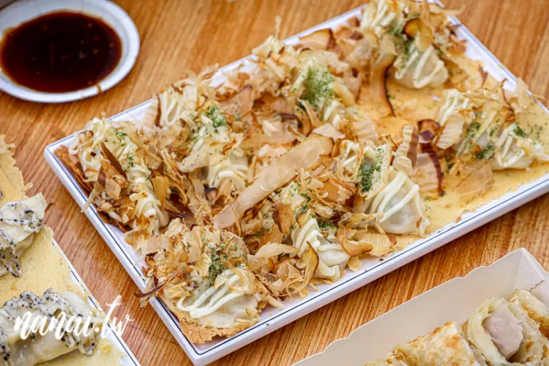 眼前這道柴魚燒煎餃是店內人氣王,將冰花煎餃打造成章魚燒概念,灑上柴魚、美乃滋、海苔粉等豐富配料,每顆煎餃外層沾滿配料,不僅底皮是整片的,一口咬下伴隨卡滋酥脆聲超療癒,煎餃得熟度、鮮度也都恰到好處,鮮美又有湯汁,最後加了柴魚和美乃滋更加倍帶出煎餃甜味,無論是大人小孩都喜歡。
