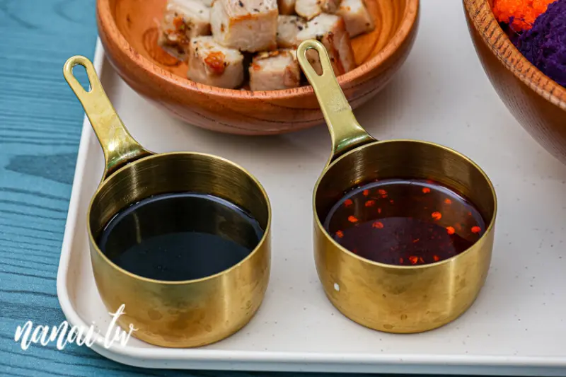 Lala醬料多達9種,可選擇不用醬包,或是加購15元可多一種口味。我點的是特製辣醬,嚴選洋蔥和麻香花椒製作,花椒香氣明顯,尾韻卻不嗆辣,甚至還有回甘滋味。然後再加購15元柚香和風,不得不說這款柚香和風深得我心,嚴選日式柚子風味製作,微酸順口滋味在齒頰間劃開,再搭配清脆生菜口感契合。