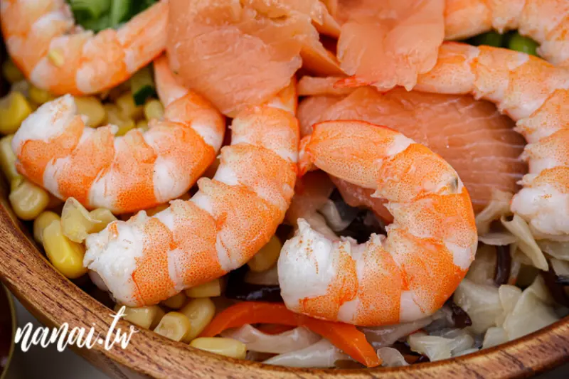 鮮蝦仁和冷燻鮭魚一吃就能感受到鮮度,尤其是蝦仁保有鮮脆度,口感Q彈無腥味,重點不會粉粉。再來冷燻鮭魚也美麥,細緻魚肉放進口中咀嚼,煙燻味道不會太重,油脂飽滿鮮嫩,甚至還有海鮮甜韻,這個我也很推。
