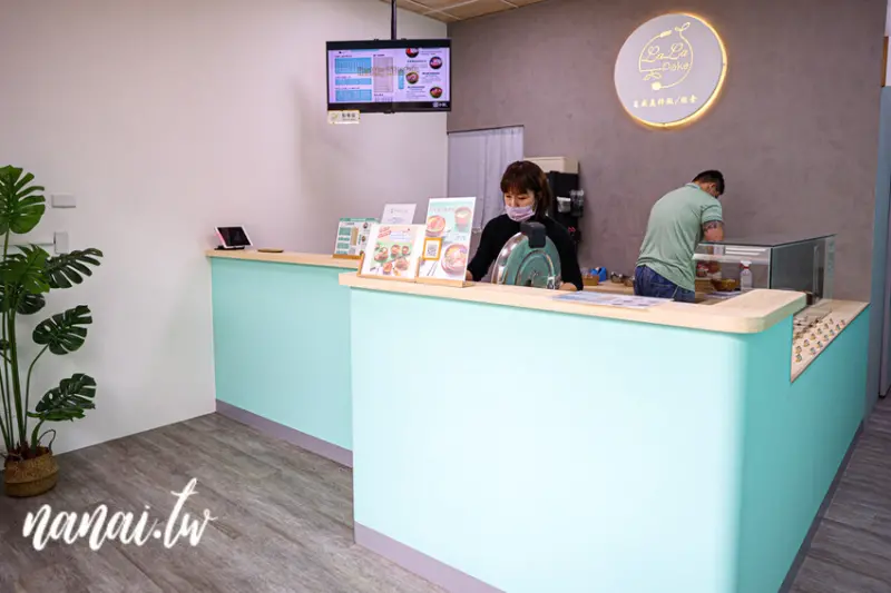 店面裝潢採用灰色牆面搭配莫蘭迪綠櫃台設計,讓整個空間呈現文青氣氛,若沒有說是輕食便當店,我還一度以為是在賣法式甜點呢XD~