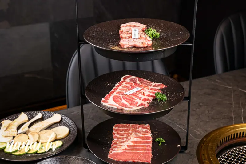 吃燒肉就是要牛豬各半比較剛好,有時候吃全牛,會覺得都在吃油脂,因此逸品安格斯伊比利肉套餐除了有豬品項,也有日本A5和牛霜降、 美國安格斯肩胛牛小排、 美國安格斯牛肋切等三種肉品。