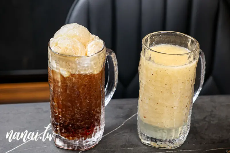 套餐飲品提供50元以下任選,若選擇50元含以上補差價。我們補98元升等霍格華茲奶油啤酒(無酒精),口味不錯,奶油細緻度和甜度比例剛剛好,重點喝完不會覺得膩。再來是季節限定鮮果汁,味道香甜越喝越涮嘴。