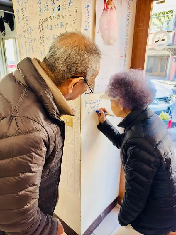 朋友的父母還在這裡留了簽名,還是泰文!哈哈,感覺特別妙,我們介紹眷村菜給他們,他們也吃得津津有味,直呼:「這裡真的好吃呦!」
