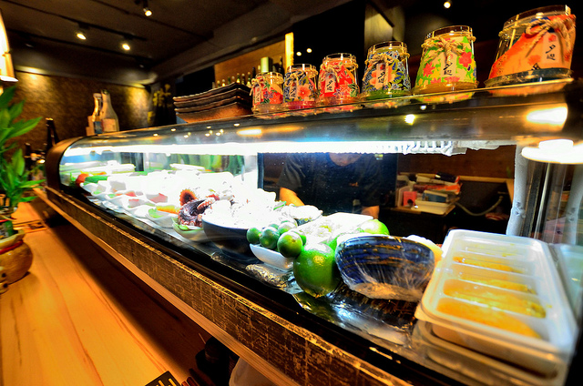 吧台上的冷藏櫃,擺放著廚師每日親自採買新鮮漁貨