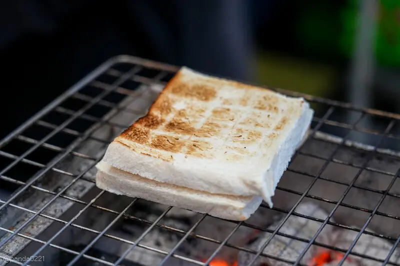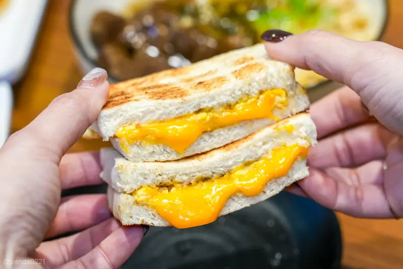 福飽飽的炭火吐司系列是真的用炭火烤過的喔!吐司帶著炭火特有的香氣,搭配軟嫩的歐姆蛋,一咬下濃郁的起司滑出來,鹹香軟潤,真的超銷魂!