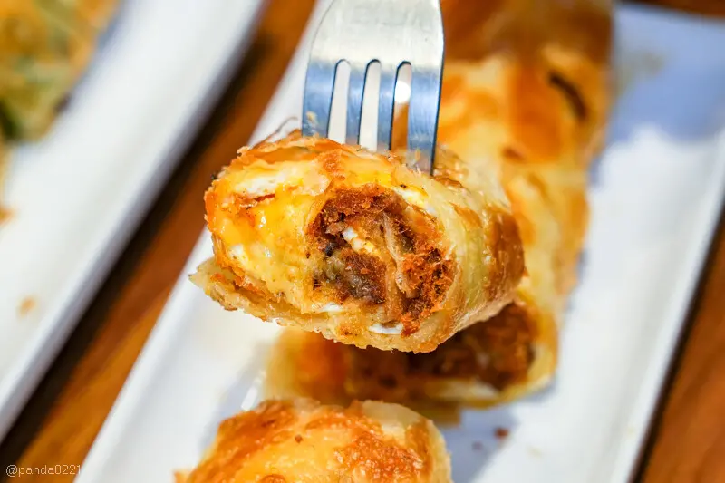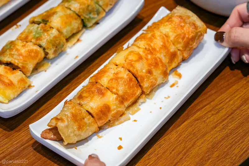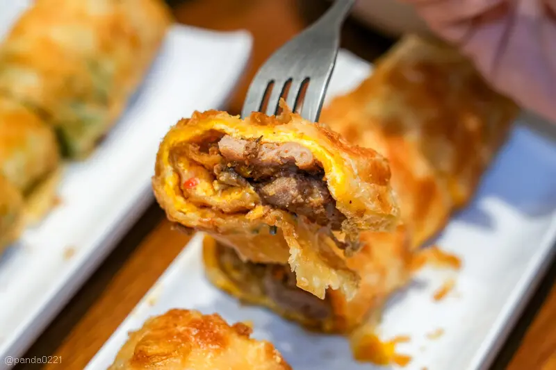鬆擱有辣是福飽飽的新品!滿滿的肉鬆、濃郁的起司,再加上特製辣椒,口感層次豐富。如果你喜歡酥脆的蛋餅,這家一定會讓你愛上!餅皮煎得金黃酥脆,現點現煎,吃起來卡滋卡滋超有咬感,咬下去不只肉鬆和起司的香味,還帶著辣椒的微辣,每一口都很過癮!