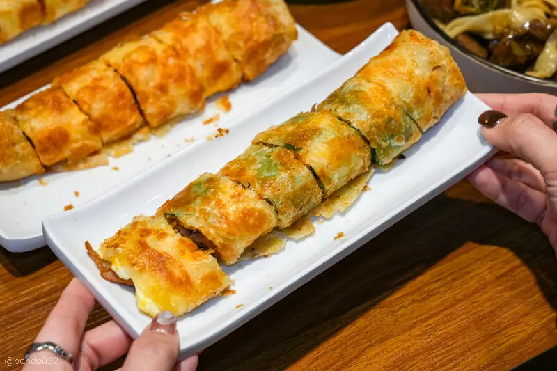 椒椒烤肉蛋餅包裹著自製辣椒和豬肉片,內餡厚實軟嫩,香氣四溢,辣度恰到好處!