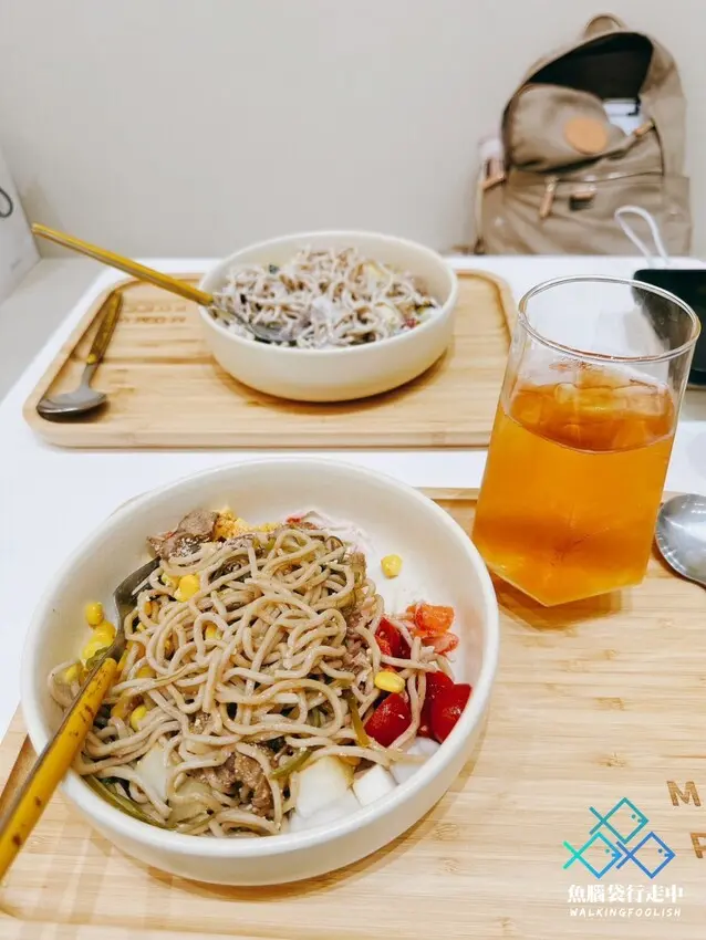 當天我點了一碗小碗的波奇,份量對我來說就已相當足夠!由於我是一位非常喜歡吃麵的人,看見MUMUPOKE有提供蕎麥麵主食,讓我相當心動!這回我品嘗了小碗的蕎麥麵基底,配料選擇櫛瓜、杏鮑菇、地瓜、泡菜、黃金豆腐、蘋果,蛋白質選擇了板腱牛,撒料為台式蒜味,淋醬後來選擇了清爽優格醬。