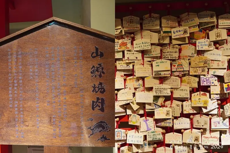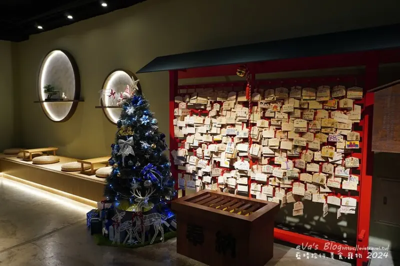 到櫃台報到拿到兩個繪馬,用完餐之後店家會提供畫筆,寫好心願或者是想畫插圖也可以,完成之後掛在祈福牆上,這片祈福牆可以滿載著許多人的願望,有看到我寫的嗎???