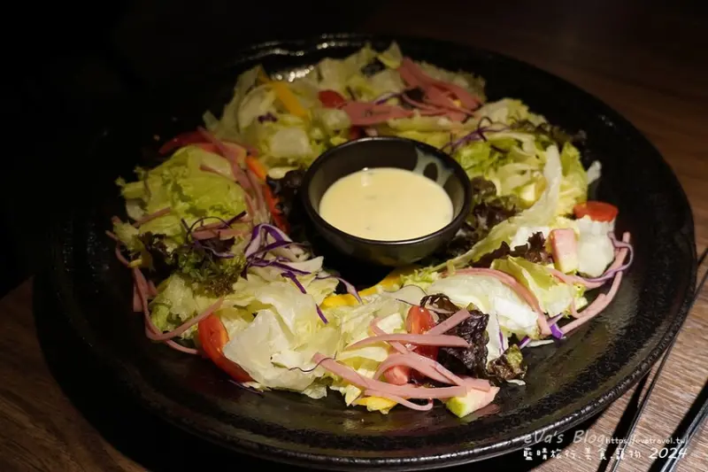 醬料吃起來微酸微甜帶著百香果的香氣,淋在沙拉上吃起來很清爽,邊吃燒肉再搭配點沙拉剛好也可以減少肉肉帶來的油膩感