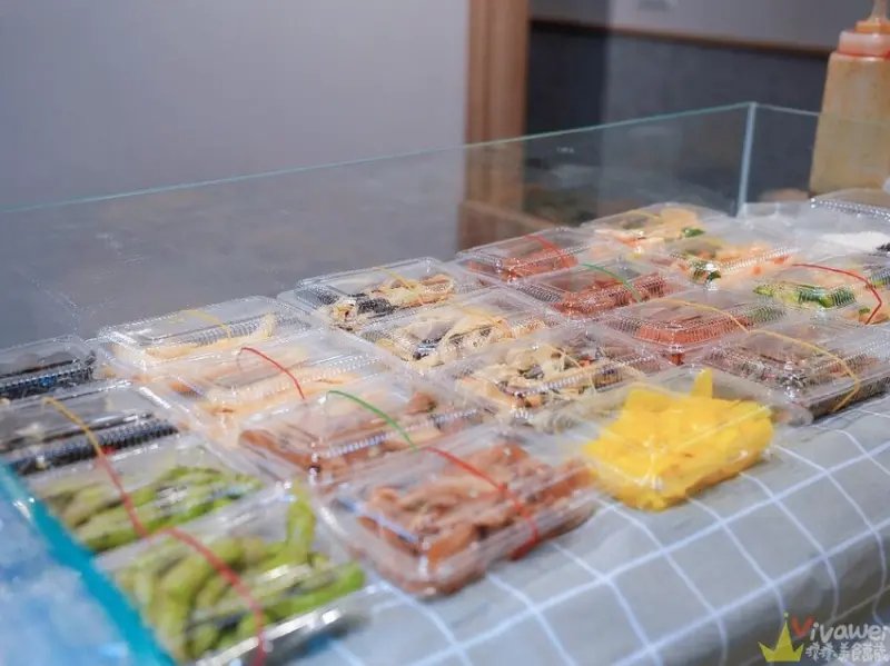 ▲在櫃檯區這邊擺放著各式小菜,小菜一份50元、兩份90元、三份130元,買越多越便宜唷!而這個透明的盒子都能清楚看到裡面的內容物,有喜歡都可以直接結帳購買👌