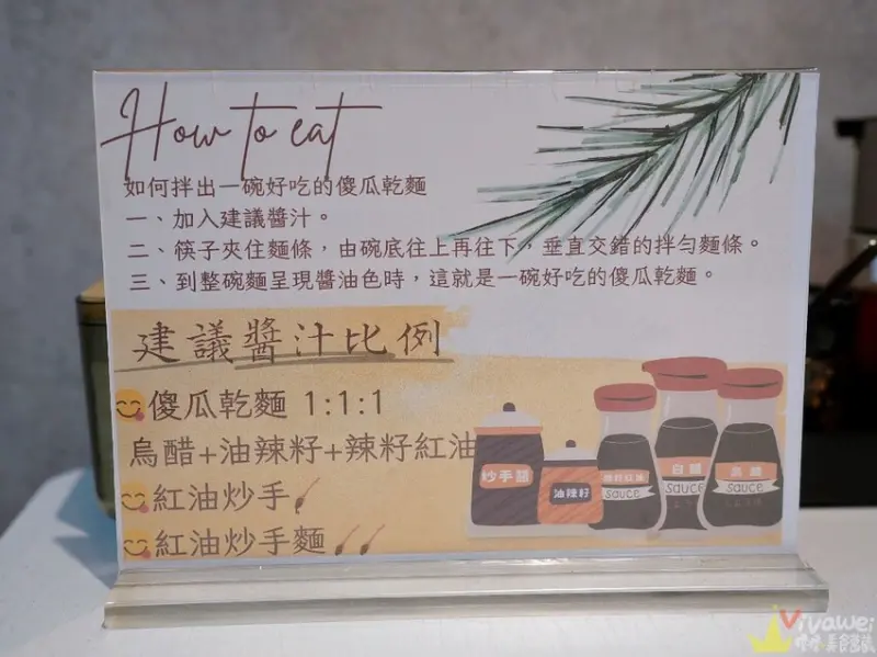 ▲桌面上都會擺放醬料,可以自行取用!而傻瓜乾麵建議的醬汁比例為烏醋1:油辣籽1:辣籽紅油1!