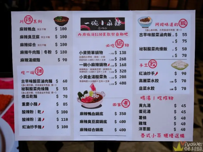 ▲這是「一碗小麻辣-中央店」的完整菜單,供參考(實際販售品項與價格,以店家現場公告為主)(線上訂餐請點我)