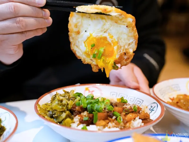 ▲滷肉飯是偏肥的那種,肥肉不膩口,吃起來有QQ的膠質感,將半熟荷包蛋的蛋黃搓破,再混入飯中更好吃😍