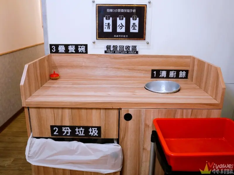 ▲用完餐後還請大家隨手幫忙收拾,先清理廚餘、再做垃圾分類、最後再將餐碗疊好!