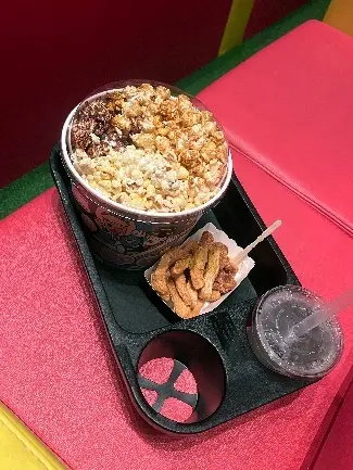 接著,帶著我的餐點,三種口味的爆米花及雙炸物和飲品,展開愉快的觀影體驗啦!