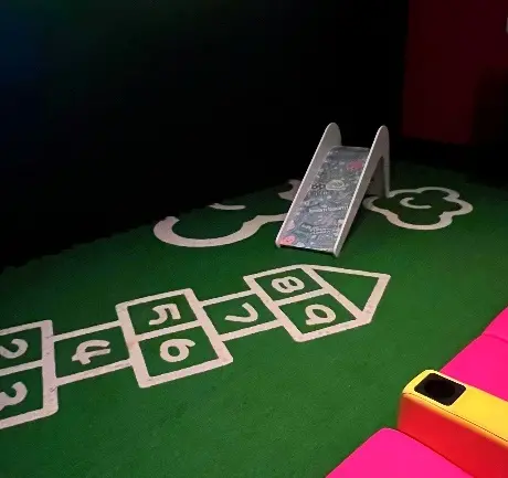 一進入親子小燈廳,就是一大片綠草皮可以玩跳房子及溜滑梯,讓小朋友可以自由的活動及玩樂,所以如果怕太歡樂的人就選擇其他影廳,那喜歡小朋友的人就會非常適合啦!