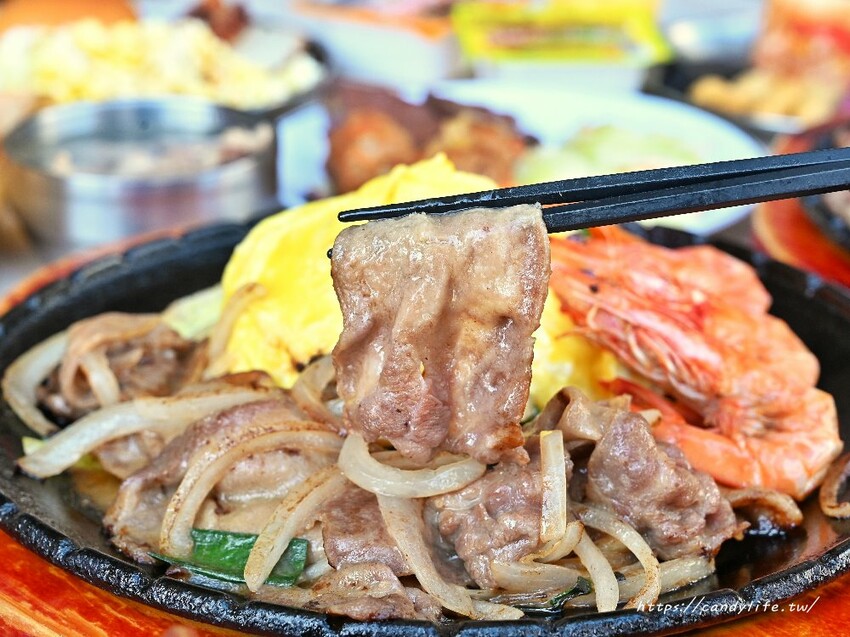 鐵將創意鐵板料理的鐵板牛排除了荷包蛋外,還可以加價升級成漩渦蛋,通常這種美美的漩渦蛋只有出現在咖哩飯上,沒想到鐵板排餐也可以看到