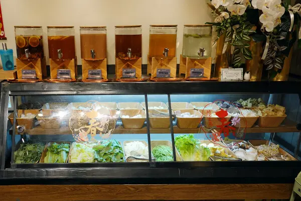 火鍋有12種湯底可以選,更厲害的是提供多達11種現泡熱茶,讓愛喝茶的人每一口都能暖心又暖胃;如果吃太飽怕腸胃不舒服,喝個熱茶也能幫助消化,完全就是吃素食火鍋的完美搭配!