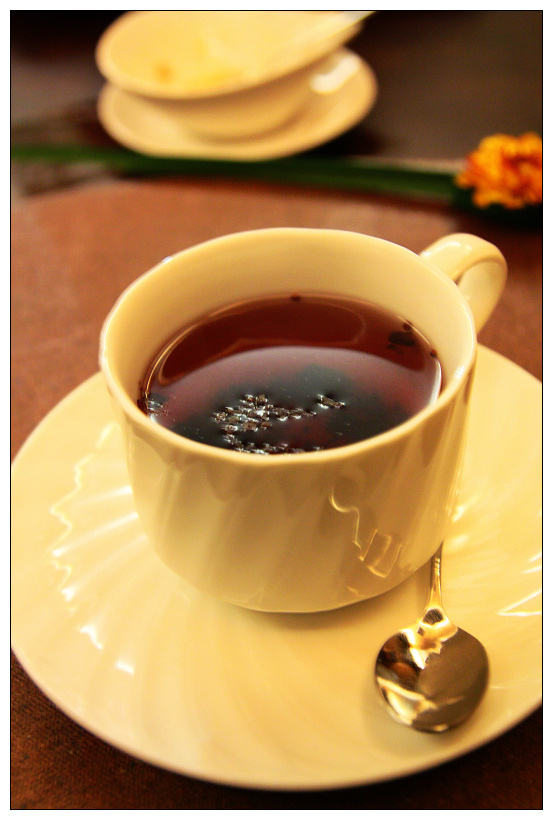 最後甜點是龍眼芋泥+熱桑椹汁