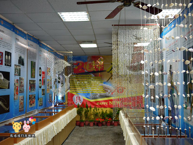 走到二樓,有一展覽館室專門將貝類的殼回收在利用,做成一件件的裝飾品。