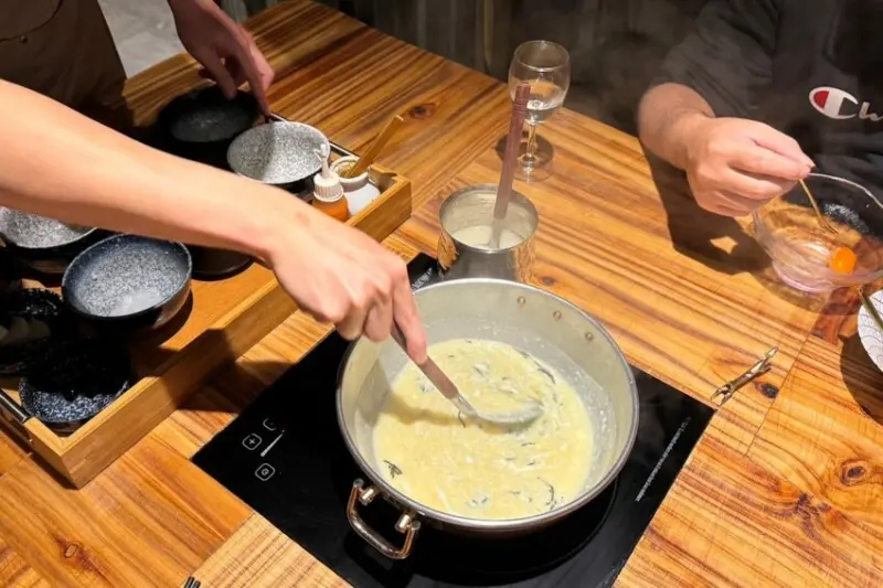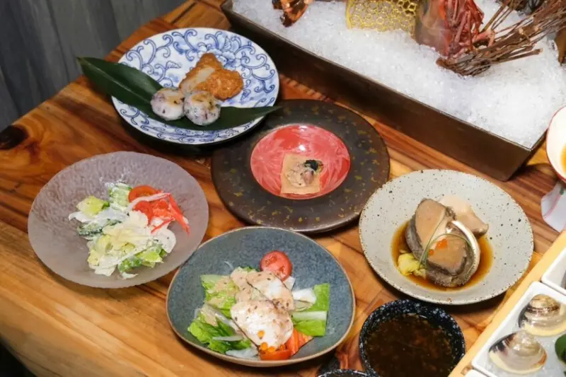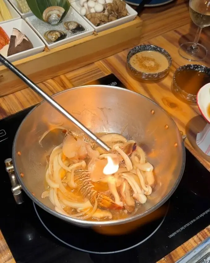 ▼【天塩川和室鍋物】提供專人桌邊服務,若是龍蝦或是特殊食材的部分,都會由服務人員協助料理,入座後還會提供免費香檳享用,以及豐富多款的酒類可選購。