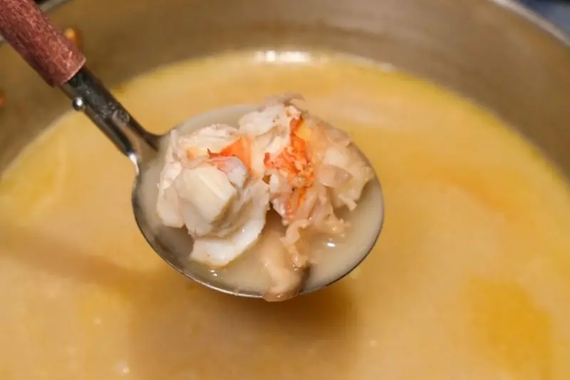 ▼上演吸睛表演的火焰龍蝦湯頭,整個料理過程非常有儀式感,以蝦醬、奶油爆炒加勒比海龍蝦,接著倒入英國進口威士忌,充分釋放出龍蝦的甜香,最後再加入白濃雞湯就完成,喝起來風味渾厚鮮甜,推薦大家一定要點起來~