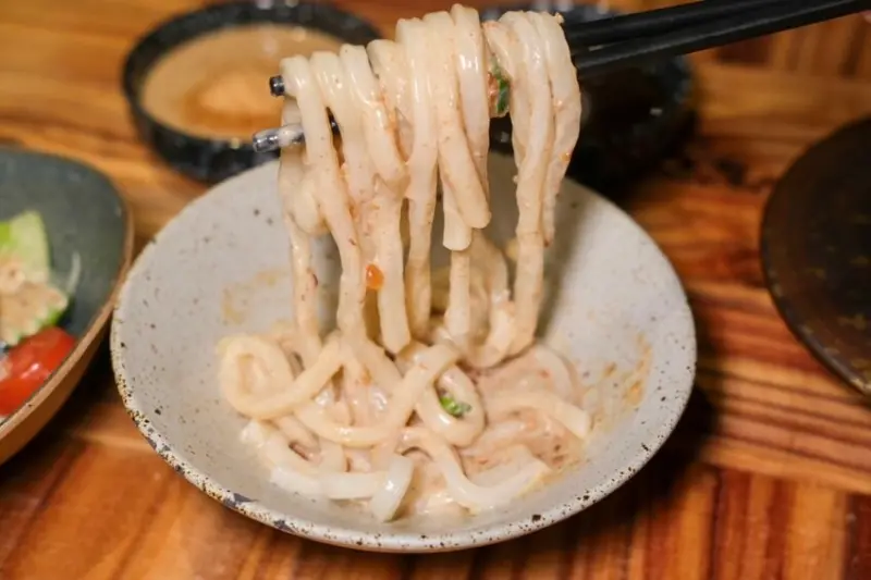 ▼麵食控也可以選擇讚岐烏龍麵,伴著濃郁醬料及逼逼啵啵鮭魚卵,吃起來很有層次感!