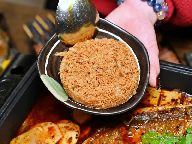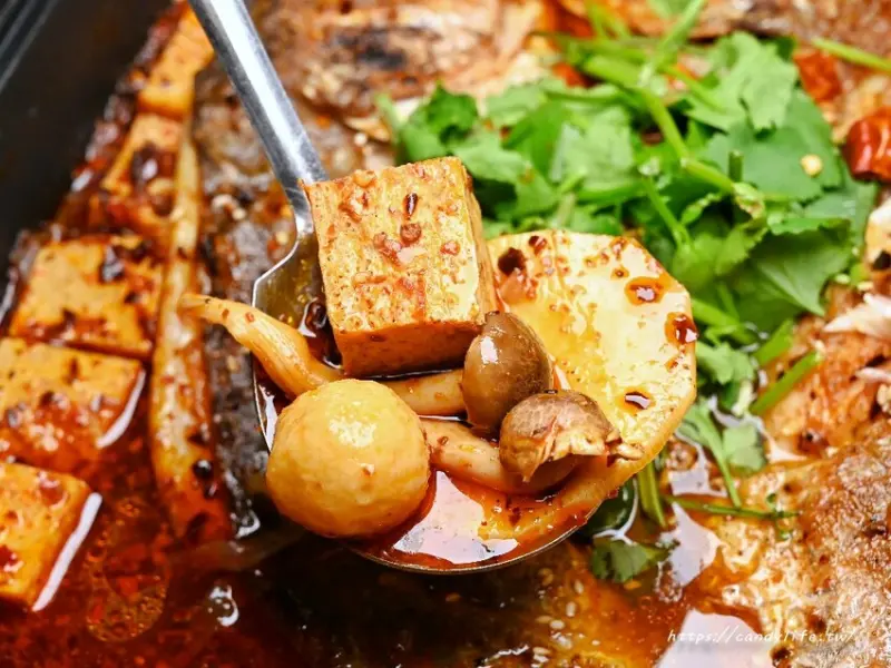 這裡的炸蛋造型好特別,將雞蛋炸至金黃香酥的模樣,入鍋吸附烤魚鍋的濃郁湯頭,吃起來不會太過油膩,咬下去還會噴汁呢