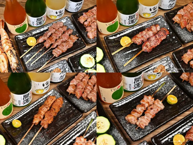 塩燒牛肋條串 160元/塩燒黑毛豚舌串 160元/辣孜然羊肉串 140元/塩燒桂丁雞松阪串 140元
