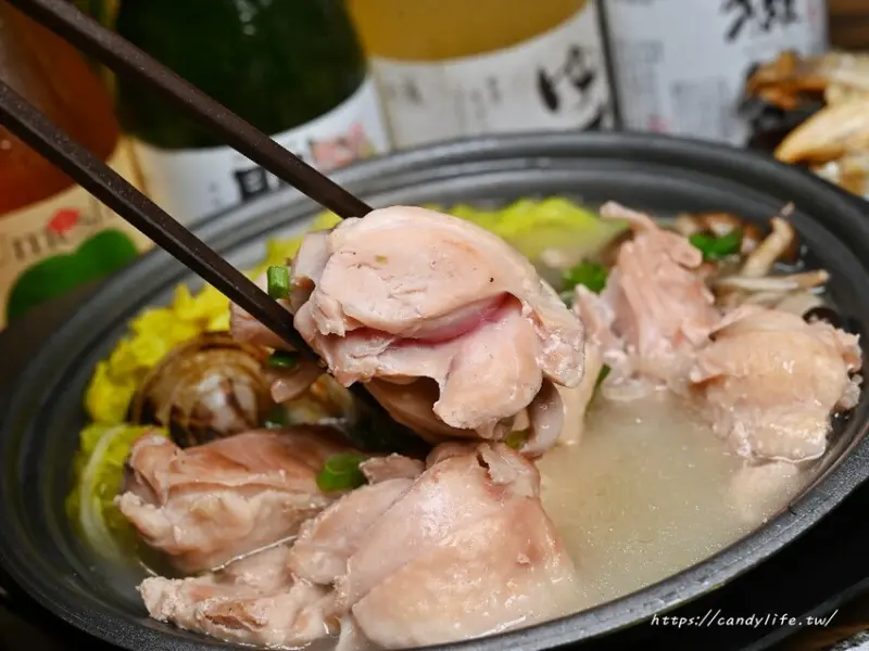 加入雞腿肉、蛤蜊蔬菜等熬煮,湯頭喝起來超級鮮甜,裡頭的雞腿肉也很軟嫩,娃娃菜吸附著濃郁湯頭也超好吃,喝完還可以再加湯唷